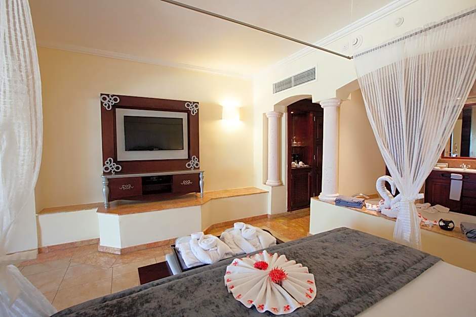 Located in Family Club Section. The Majestic Supreme amenities and facilities are included. Pool view, located on all floors, with a bathtub and outdoor Jacuzzi, living room and bedroom area separated by doors. Maximum occupancy is 4 guests and could be adults or children (see Hotel Policies).
